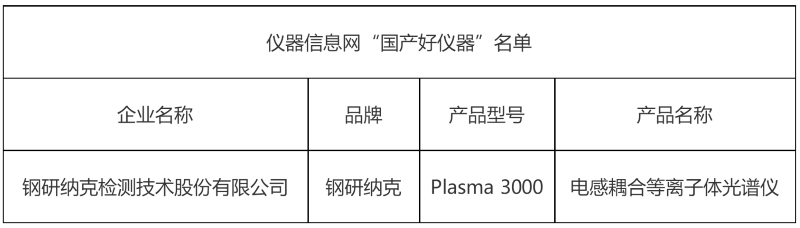 钢研纳克Plasma3000型电感耦合等离子体光谱仪成功入选第四届“国产好仪器”。